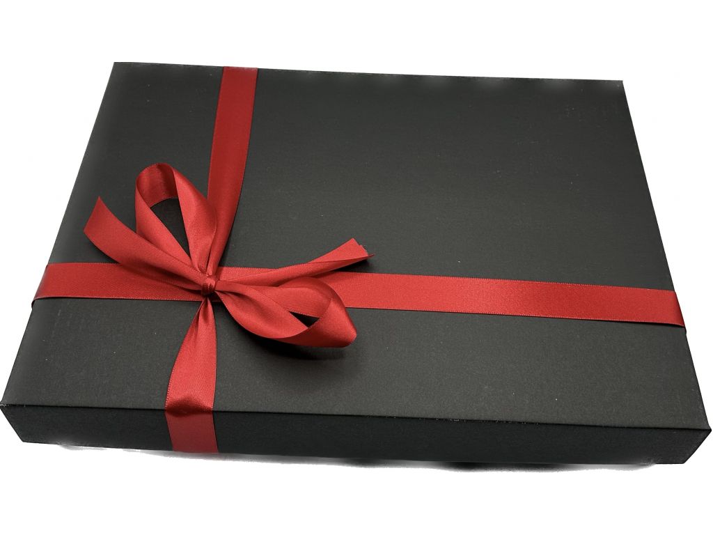 Reprezentativní balení: Velká luxusní černá krabička s červenou mašlí je ideální jako hlavní dárek k jubileu, narozeninám nebo jako poděkování za skvěle odvedenou práci na vašem autě.