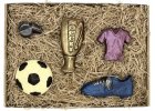 Čokoládový naviják, bojka, malá a velká rybka, závaží, nápis. Podobná sada pro rybáře